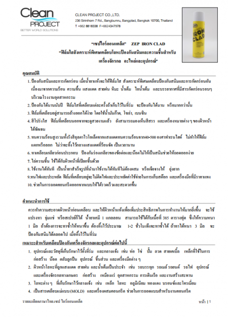 เซป ไอร์ออนแคล็ด น้ำยาสังเคราะห์พิเศษเคลือบป้องกันสนิม ความชื้น ทาแบบก่อสร้าง ถอดแบบ สำหรับโลหะ อะไหล่ และอุปกรณ์ทุกชนิดที่ต้องการเก็บรักษา ล้างออกได้ง่ายเมื่อต้องการใช้งาน เคลือบแล้วจะเป็นผิวใสเหมือนแว๊กซ์ที่ไม่ติดไฟ ทนความร้อนสูง -40-550 F (-46 C to 288 C) โดยไม่ทำให้ฟิล์มแตกหรือลอก ไม่ว่าจะทิ้งไว้กลางแสงแดดร้อนจัด ทา 1 ครั้งปกป้องกลางแจ้งได้ ถึง 6 เดือน ในที่ร่มได้ถึง 1 ปี หรือมากกว่า หากทาน้ำยาเป็นฟิล์มหนา 5-7 มิล จะปกป้องกลางแจ้งได้ถึง 2 ปี และในที่ร่มได้ตลอดไป